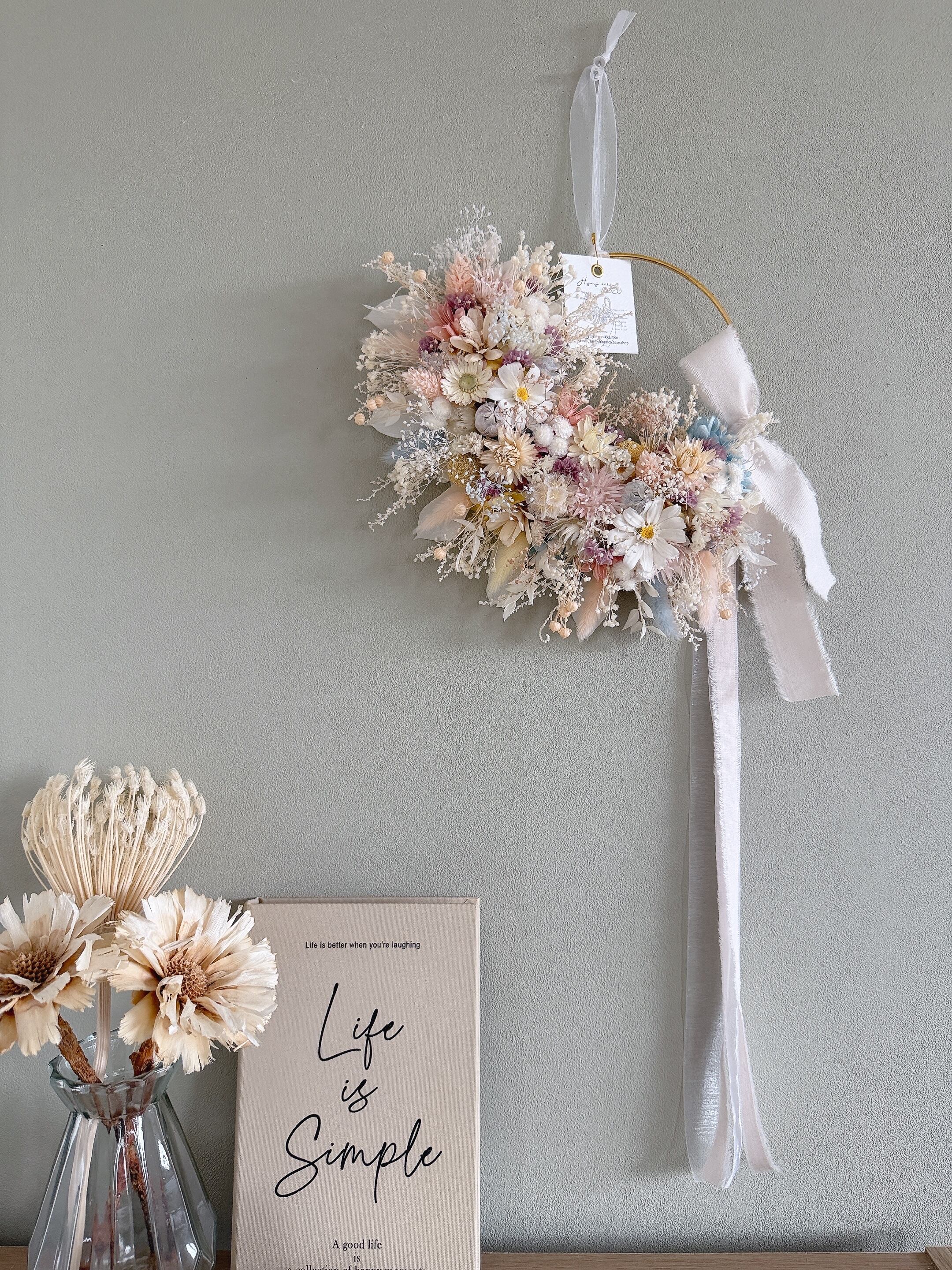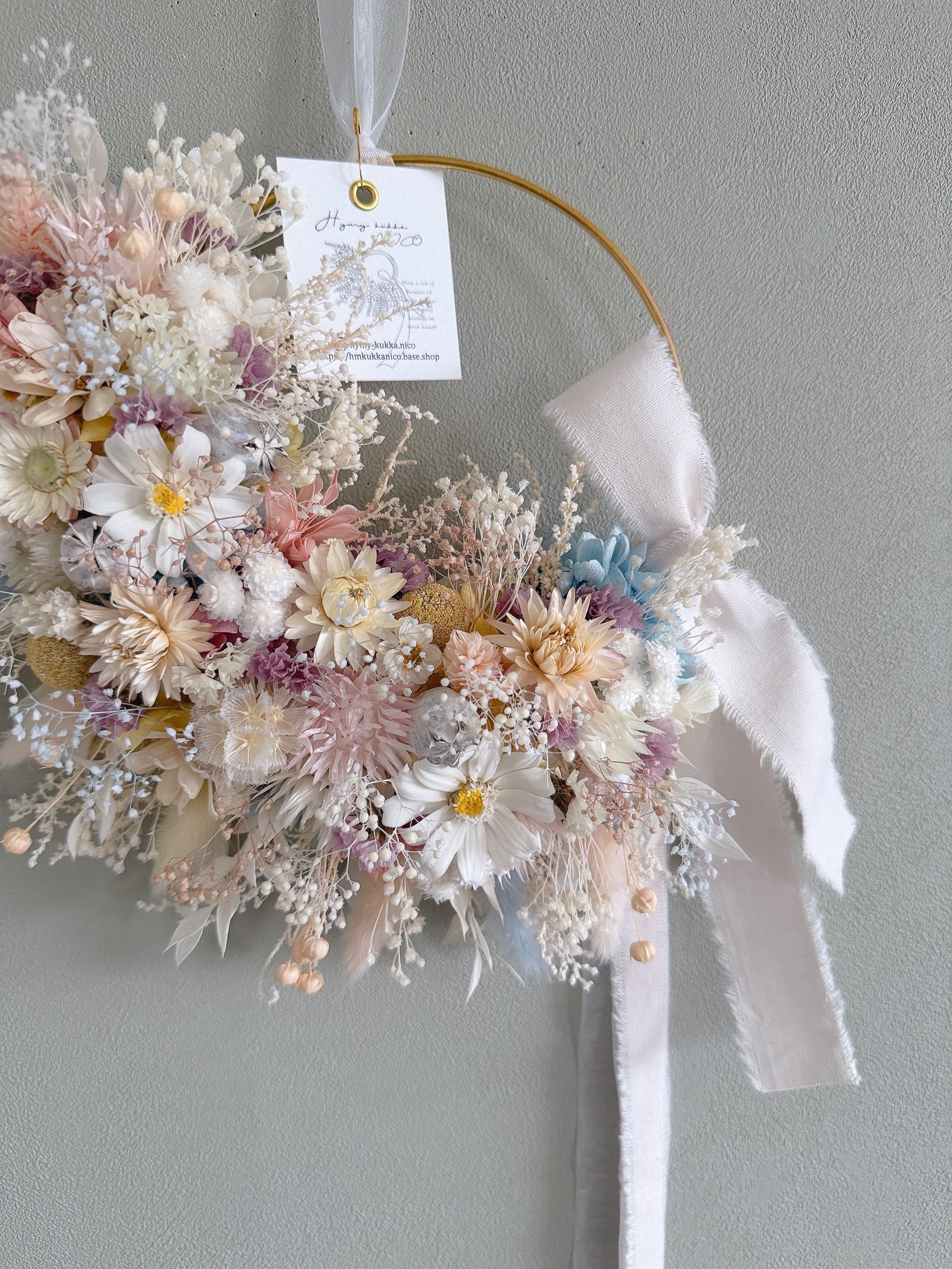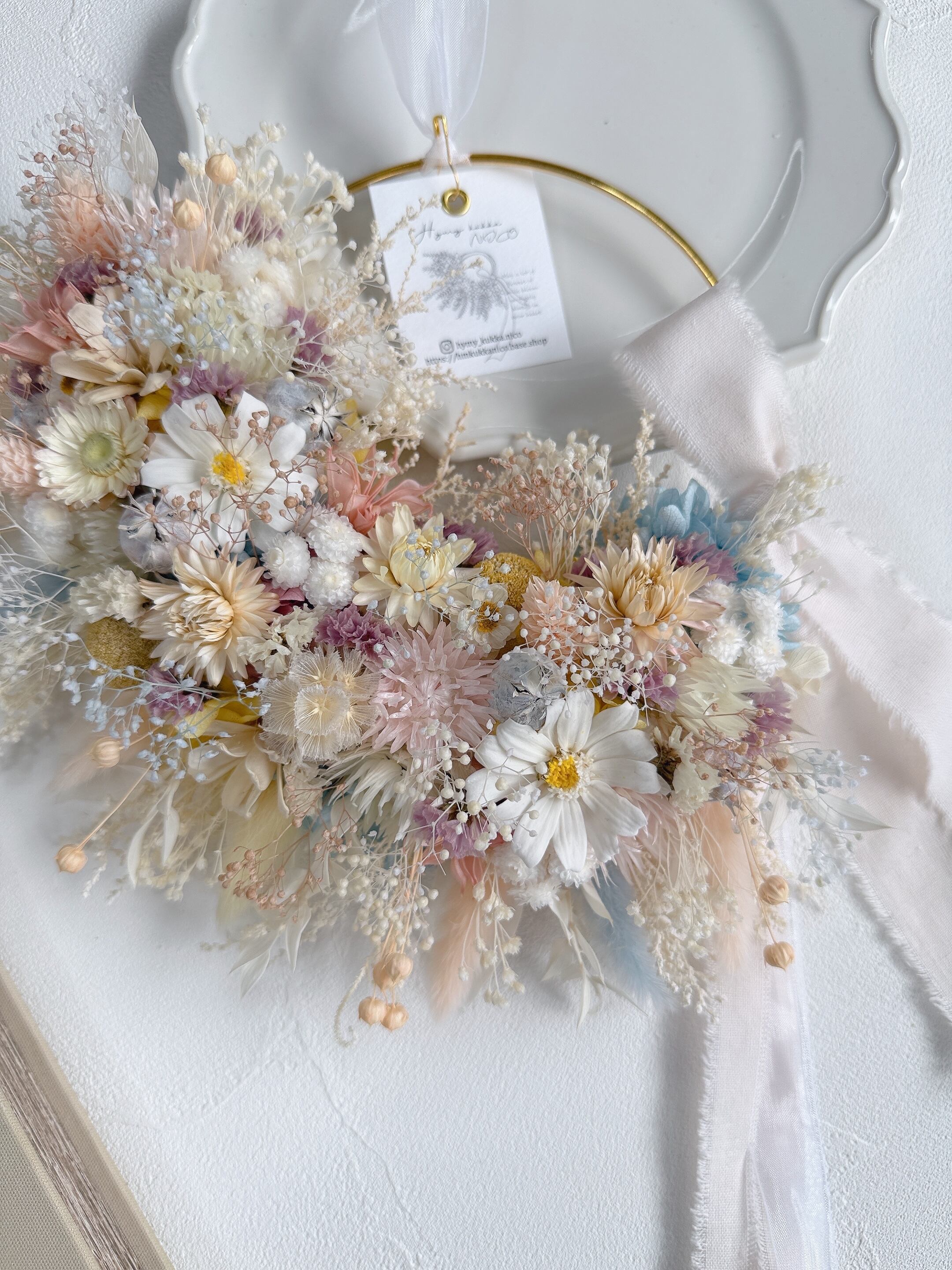 春のやさしさをそのまま閉じ込めた、特別な一点もののリースです。