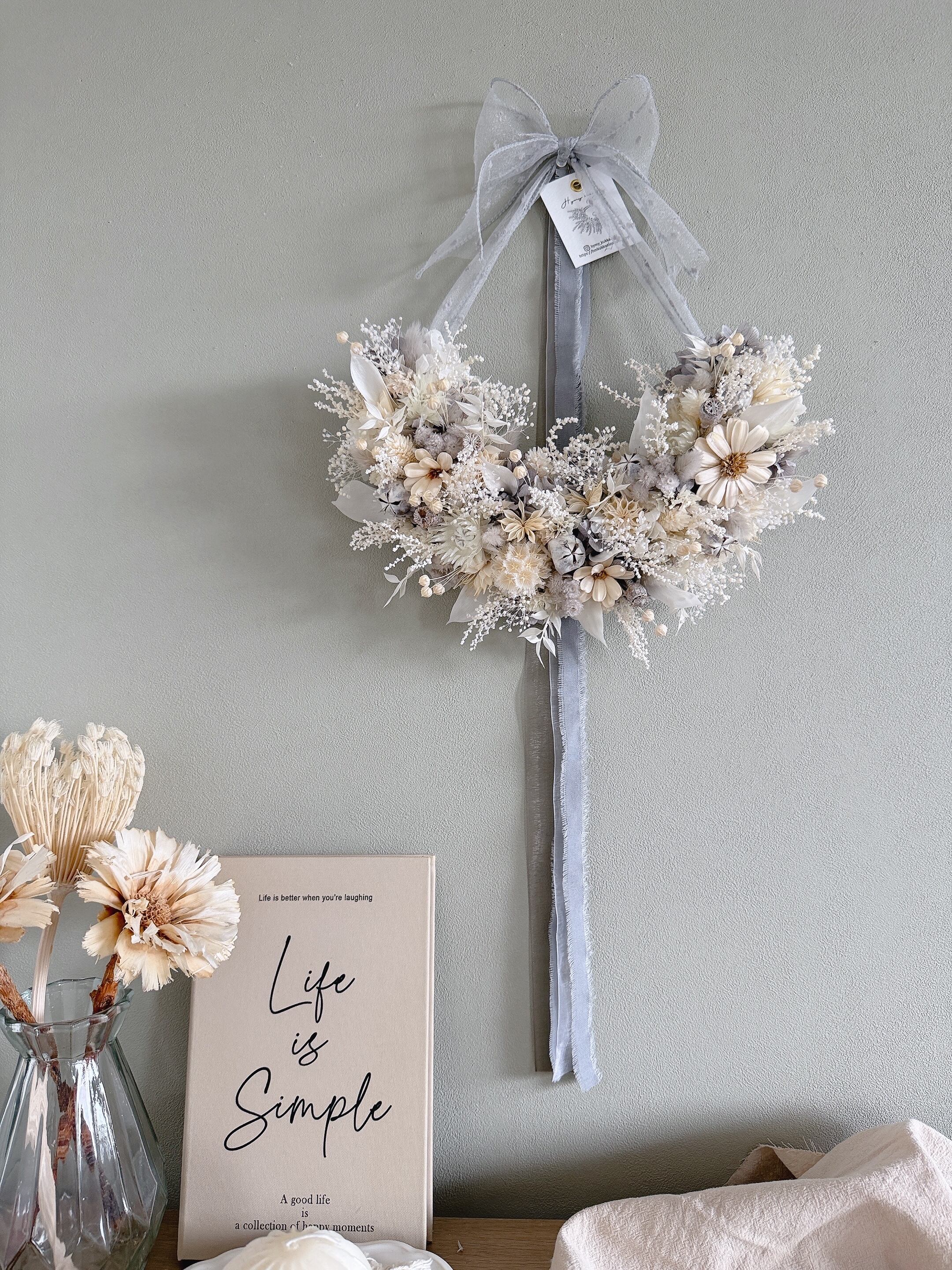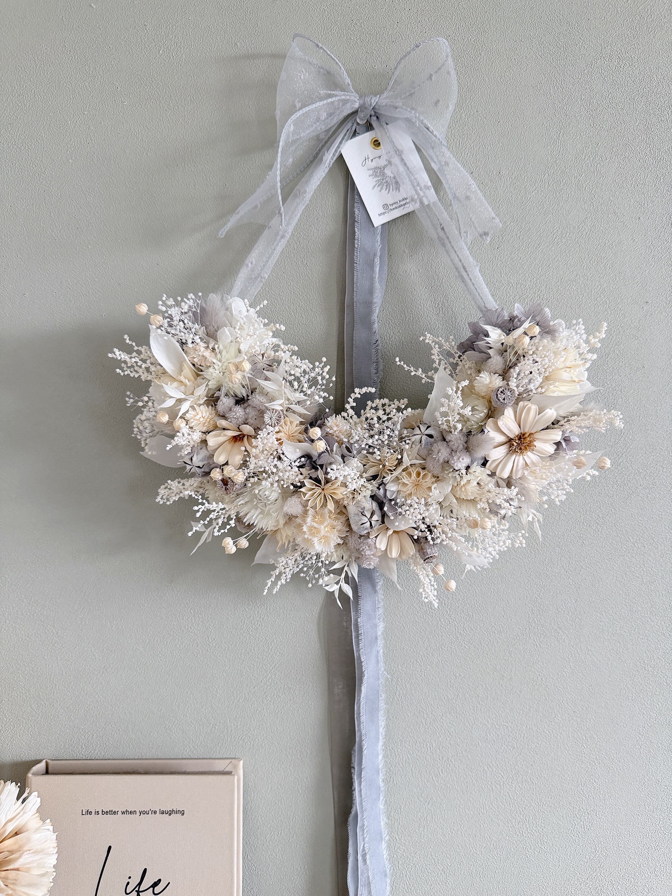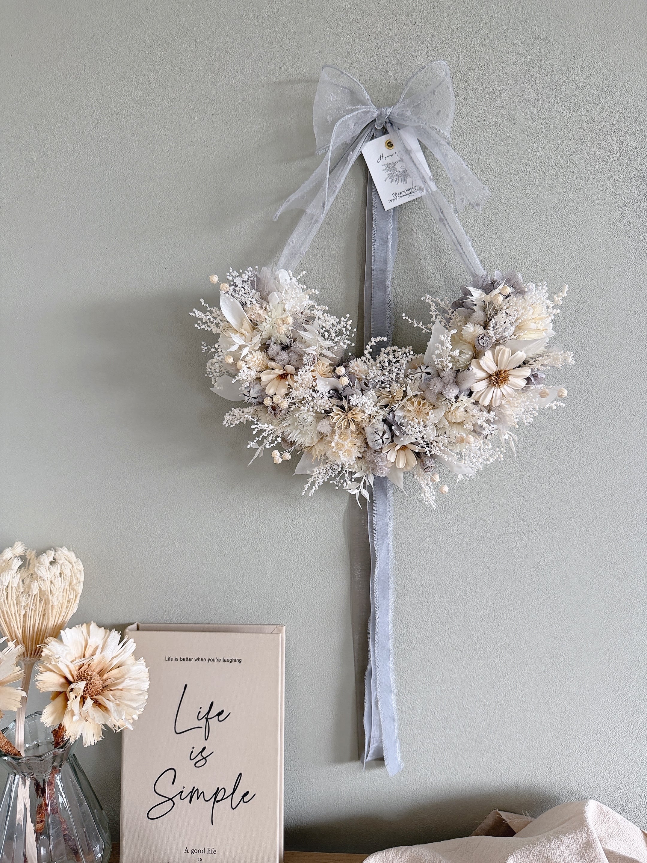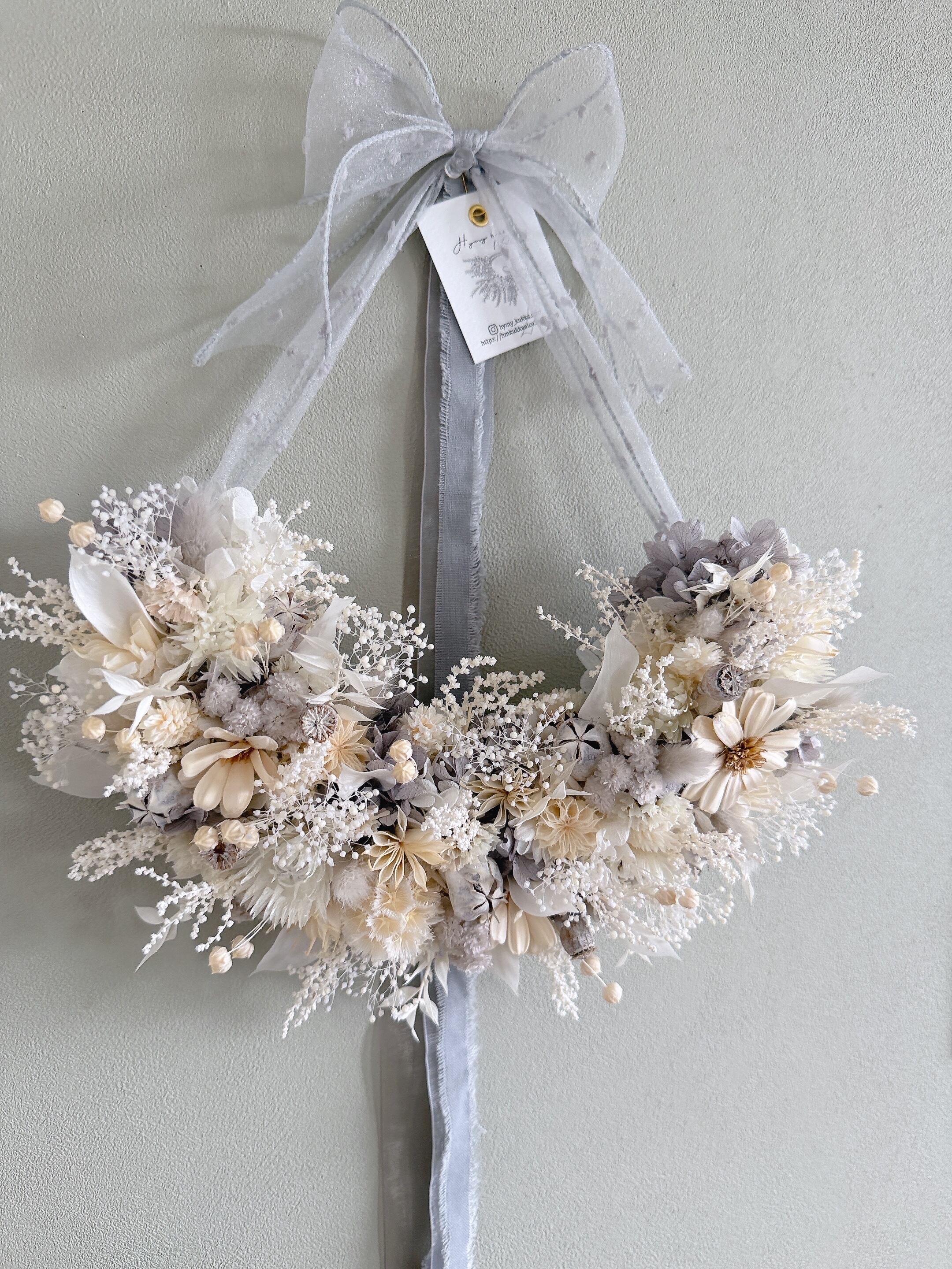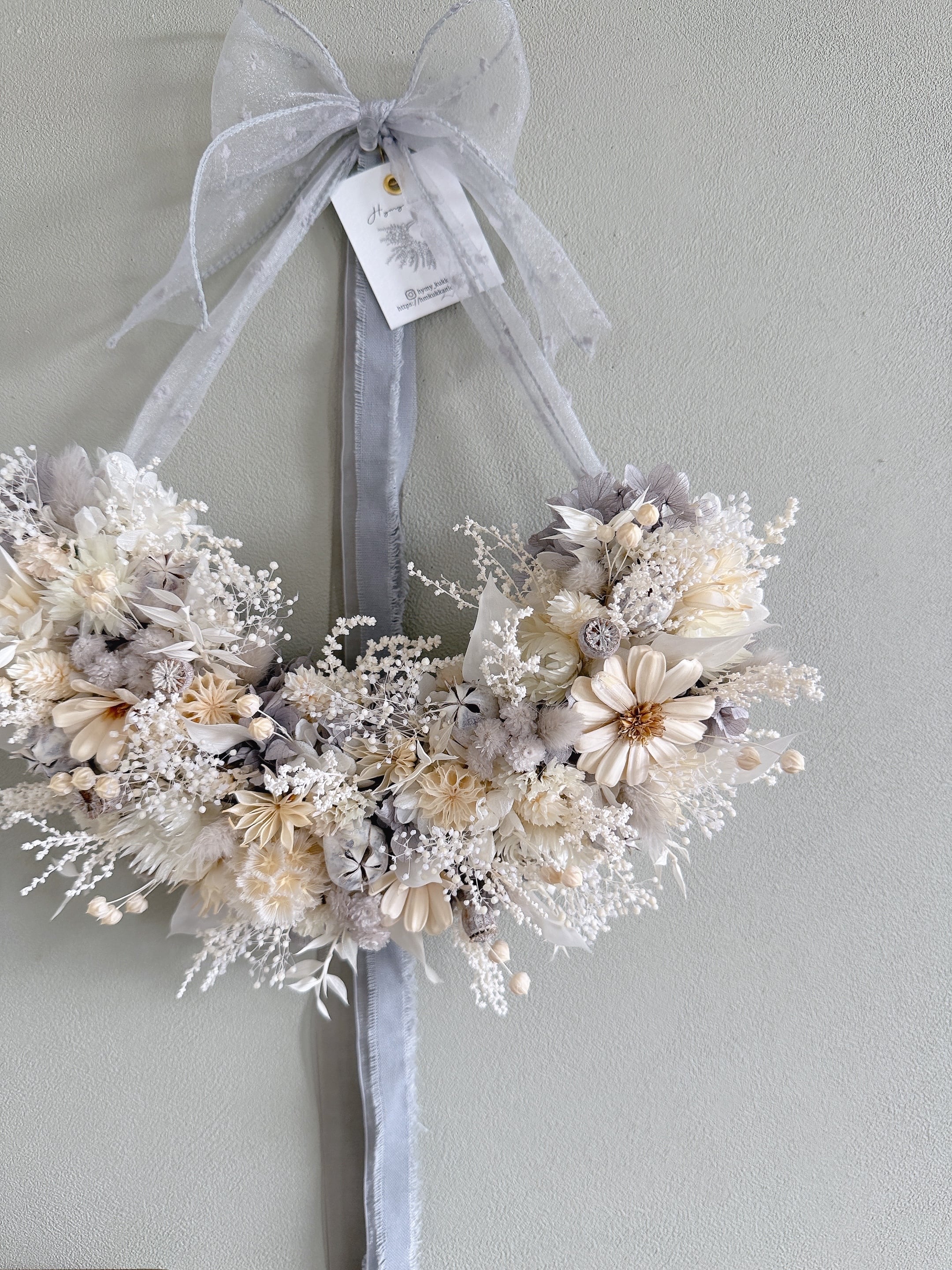 やわらかな光をまとうリボンリース – White × Gray –