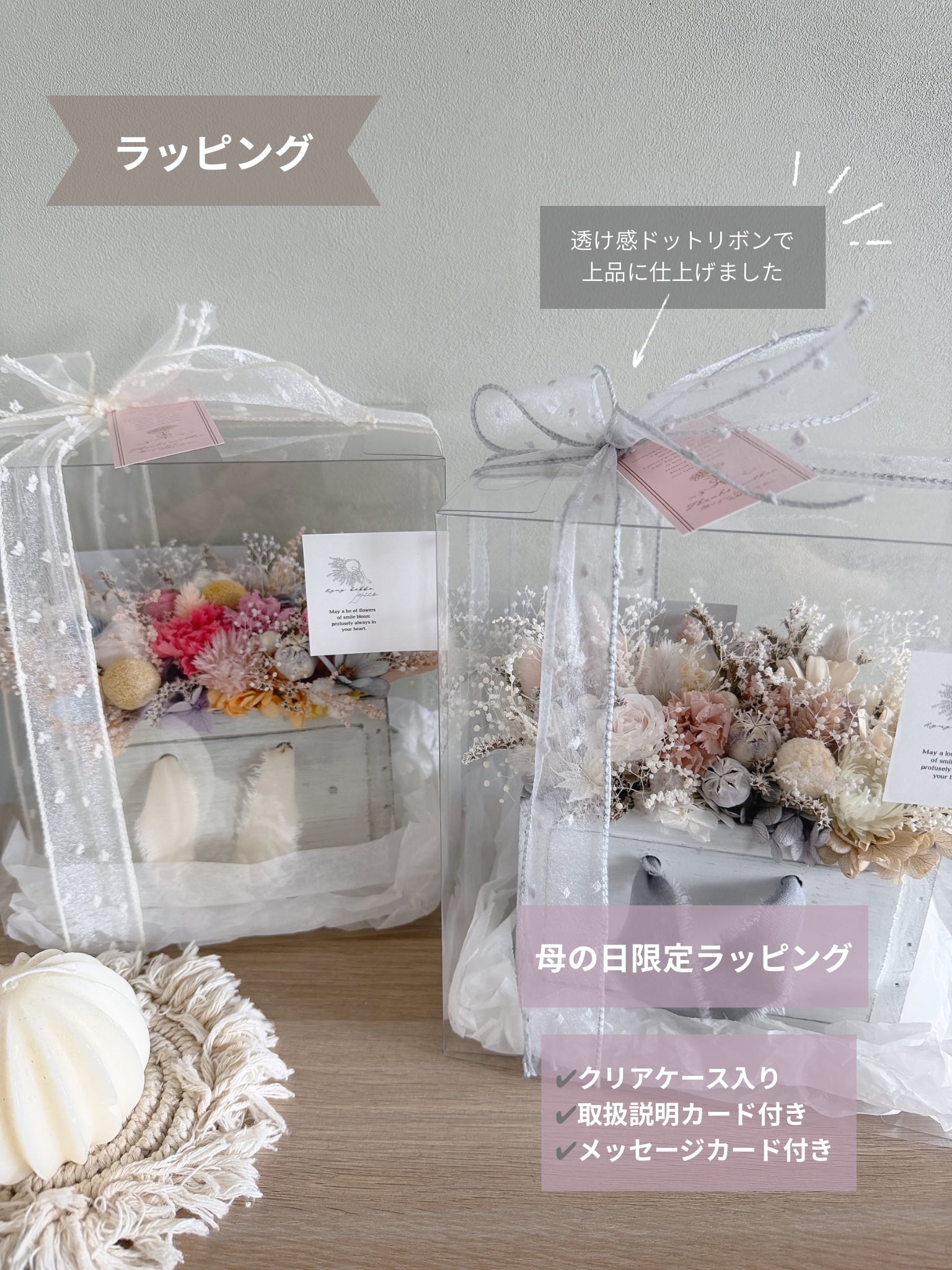 母の日仕様でラッピングした状態でお届けいたします。